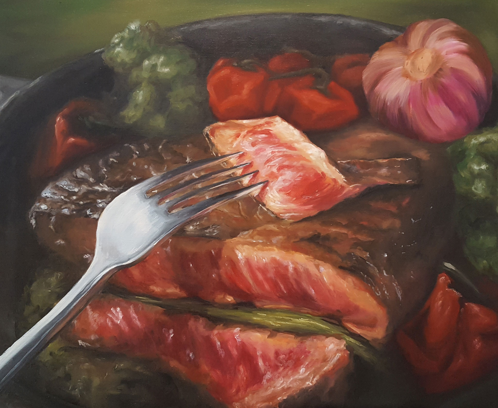 La pièce du boucher, 50x60cm Huile sur toile